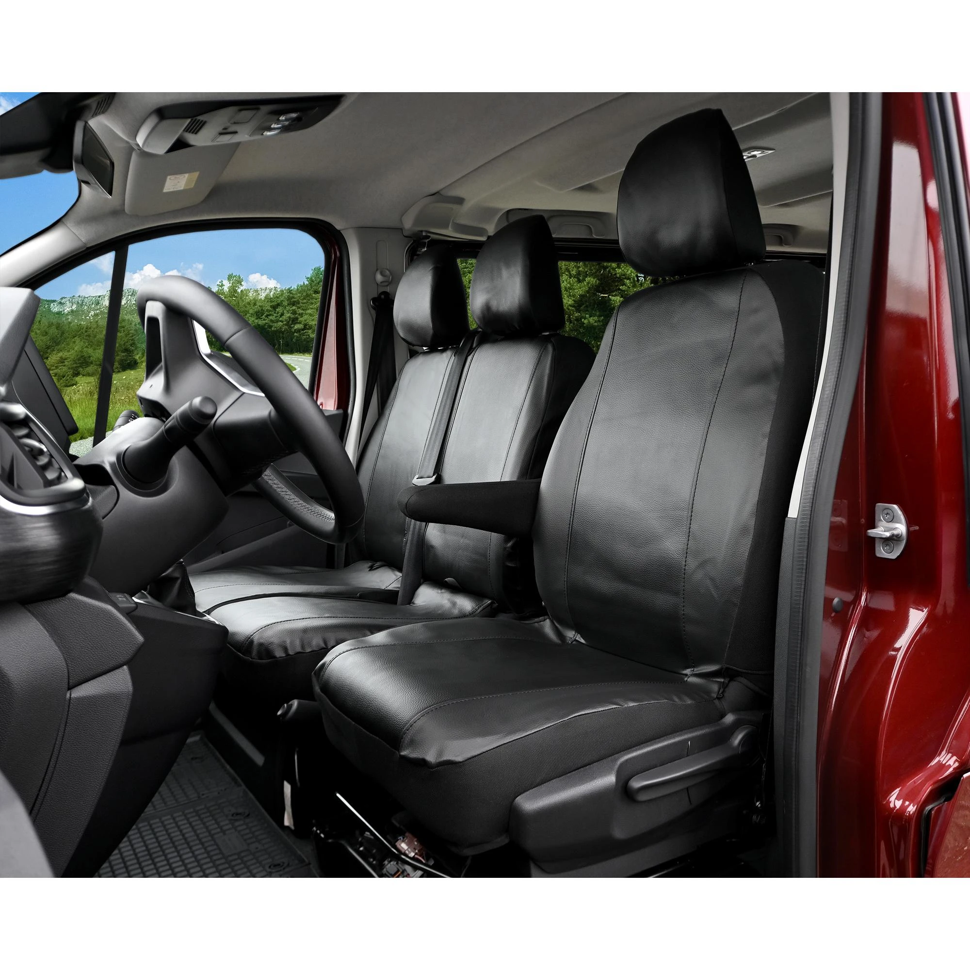 Zapewnij swojemu pojazdowi roboczemu najwyższy poziom ochrony i profesjonalny wygląd dzięki pokrowcom na siedzenia z serii MAISTER. Stworzone specjalnie dla modelu Renault Trafic III (produkowanego od 2014 roku), stanowią idealną barierę przed brudem i zużyciem. Wykonanie z wysokiej jakości czarnej eco skóry sprawia, że wnętrze vana prezentuje się nowocześnie i schludnie.