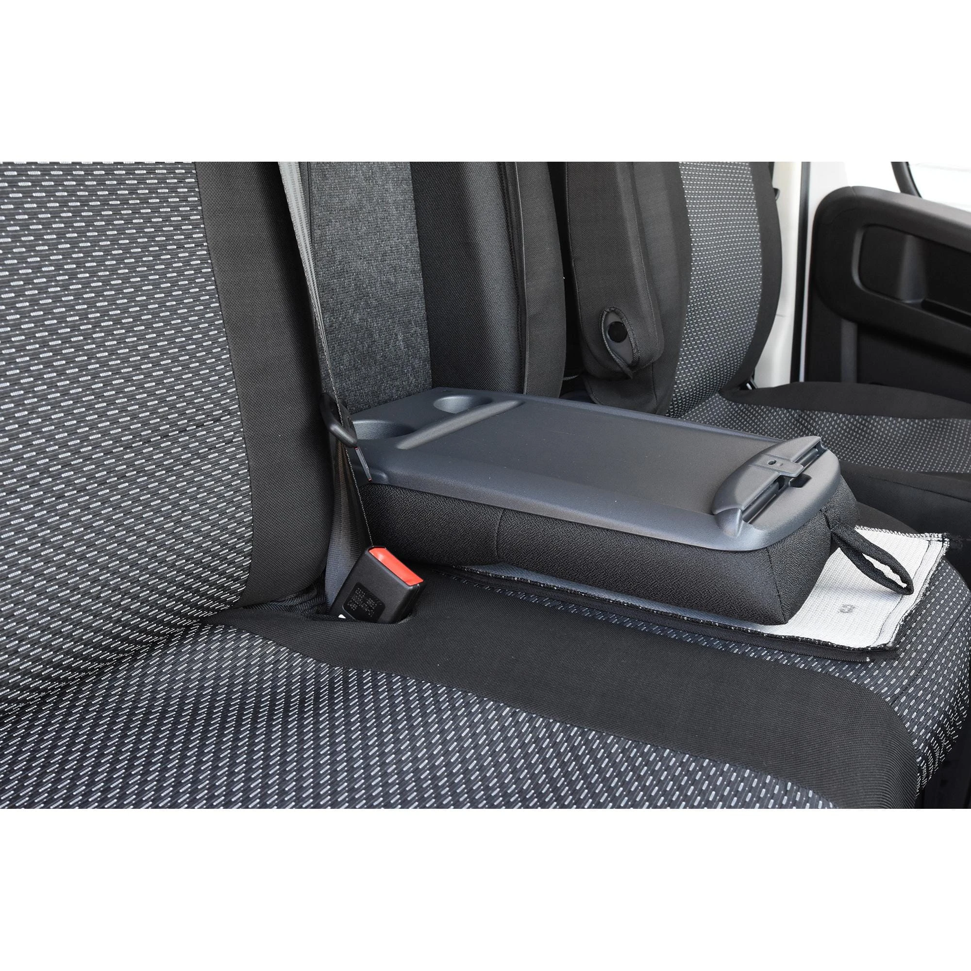 - Wszechstronność pasażera: Pokrowiec na podwójną kanapę pasażera jest w pełni kompatybilny z wersjami wyposażonymi w rozkładany stolik. Specjalne zamki błyskawiczne pozwalają na swobodne korzystanie z funkcji biurka bez konieczności demontażu pokrowca.