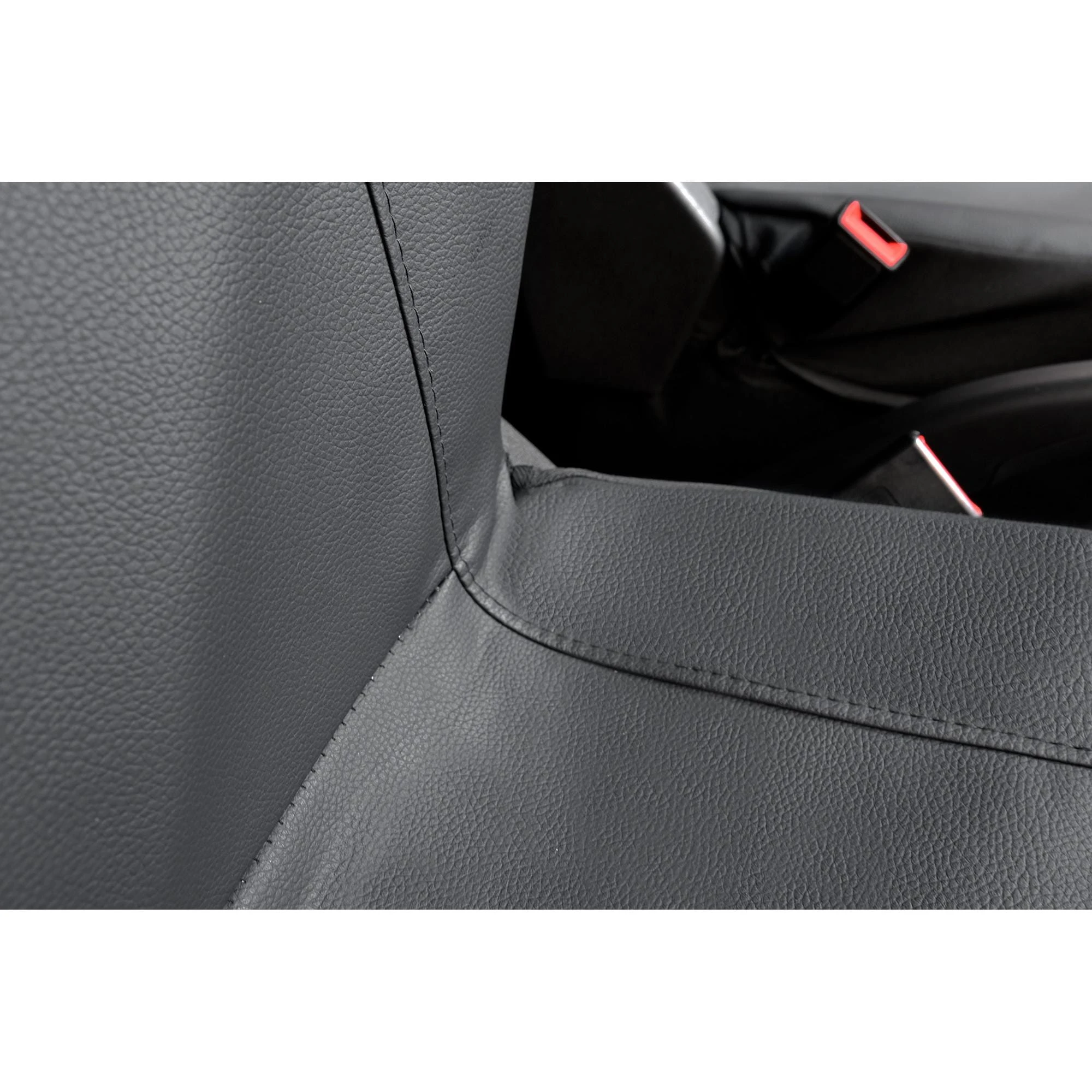 Każdy element zestawu został precyzyjnie skrojony pod kształt foteli Toyota Proace City od 2020, a wewnętrzna strona została zlaminowana grubą pianką poliuretanową. Dzięki temu pokrowce idealnie przylegają do siedzeń i nie przesuwają się w trakcie jazdy, co znacząco podnosi komfort codziennego użytkowania. Gładka powierzchnia imitacji skóry jest niezwykle łatwa w pielęgnacji – do usunięcia większości zabrudzeń wystarczy wilgotna szmatka.