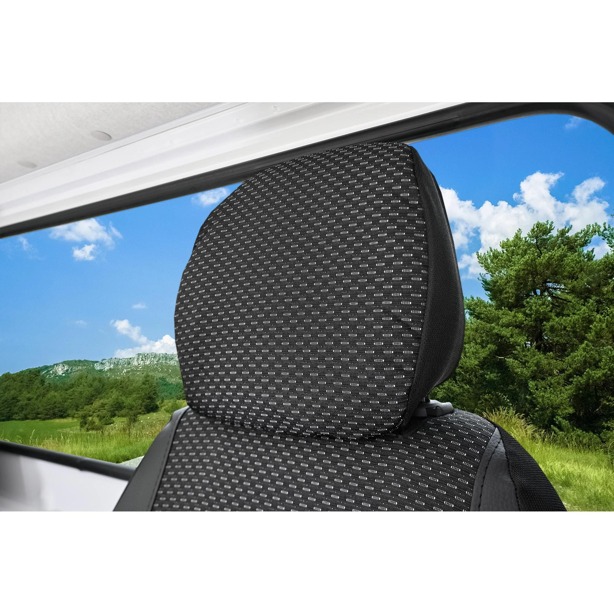 - Ochrona tyłu: Pokrowce w całości zakrywają tył oparć, chroniąc oryginalną tapicerkę przed kurzem i zarysowaniami od strony przestrzeni ładunkowej.