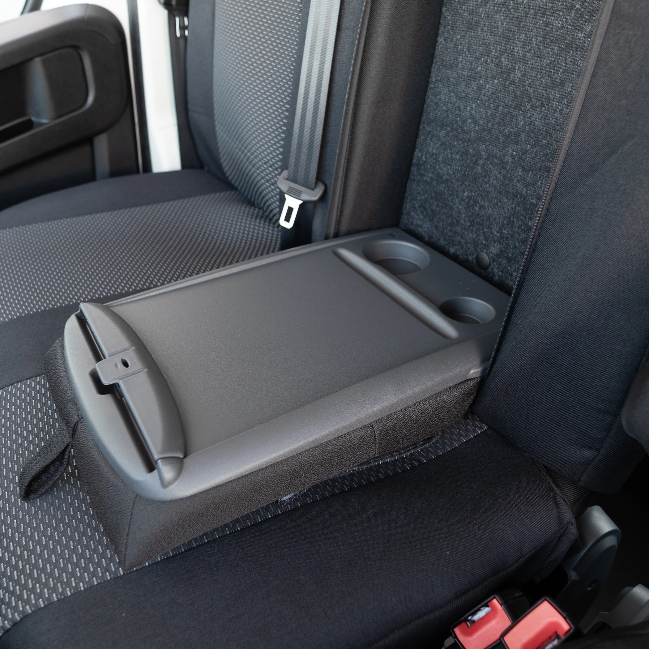 - Pierwszy rząd (1+2): Pokrowiec na pojedynczy fotel kierowcy oraz podwójną kanapę pasażera. Oparcie pasażera jest w pełni kompatybilne z wersjami wyposażonymi w stolik (posiada dedykowane zamki błyskawiczne).