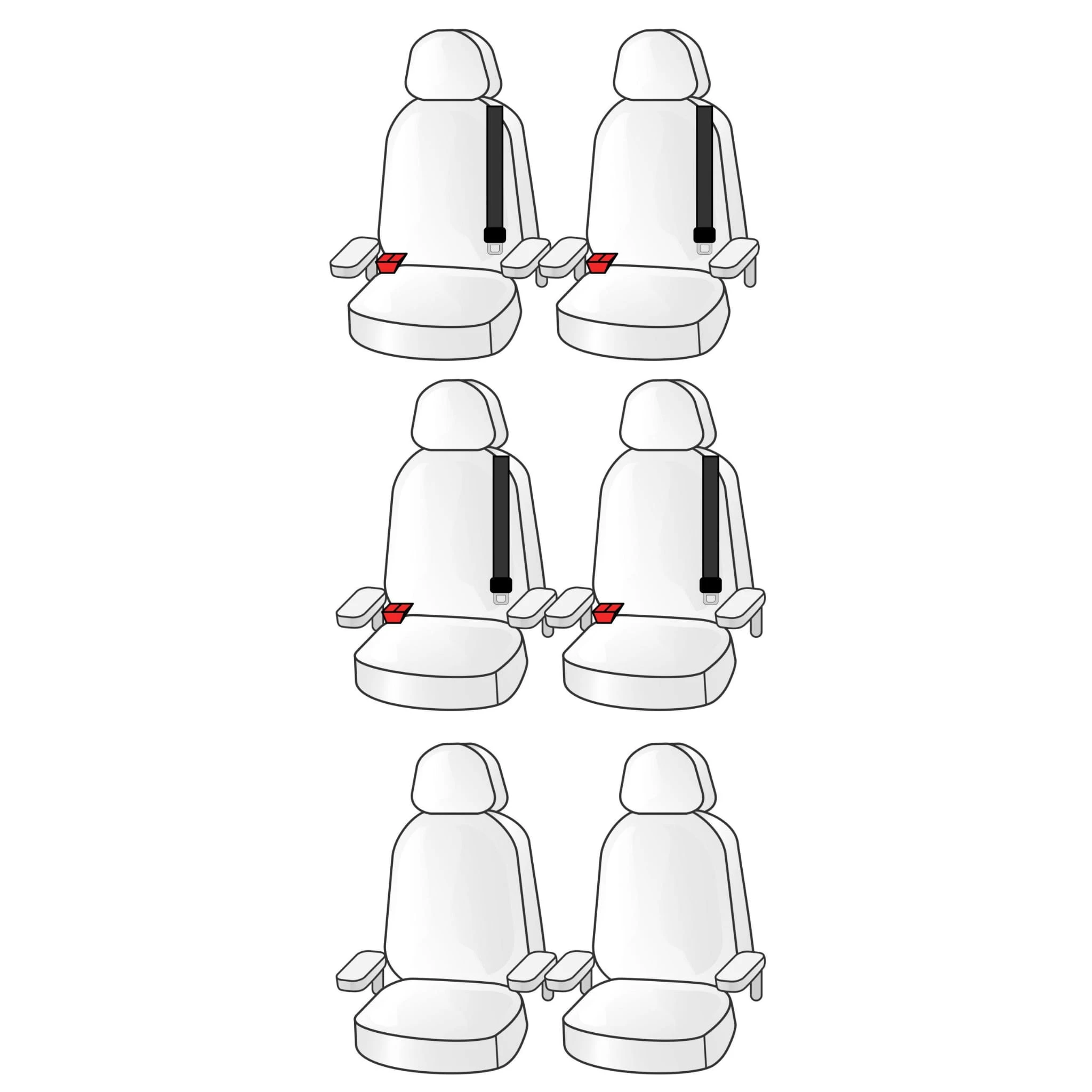 - Konfiguracja 6x1: Komplet obejmuje pokrowce na 6 indywidualnych foteli (rozmieszczonych w trzech rzędach po dwa miejsca).