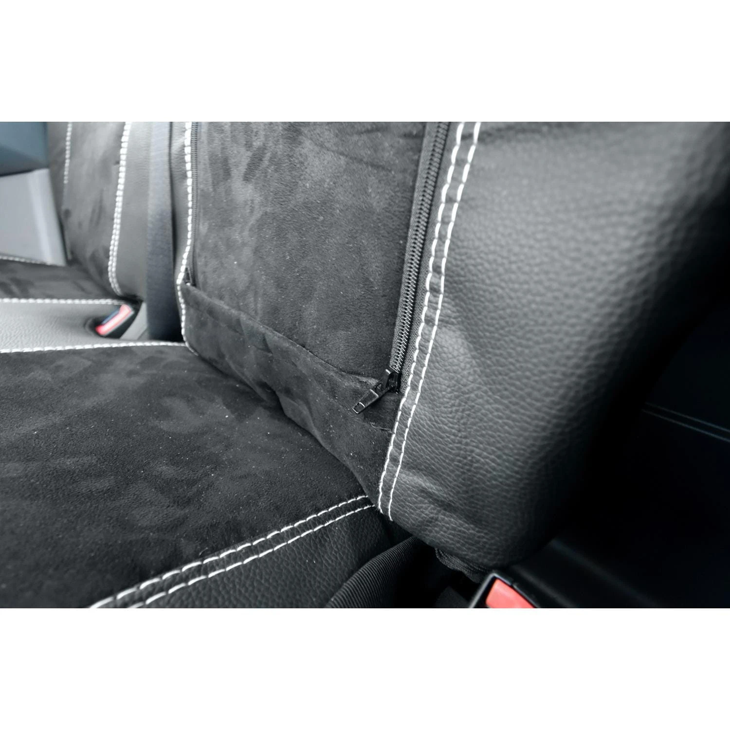 Podnieś standard swojego miejsca pracy dzięki ekskluzywnym pokrowcom na siedzenia z serii KING. Zaprojektowane z myślą o najbardziej wymagających użytkownikach Volkswagena Craftera I, łączą luksusowy design z wyjątkową trwałością. Połączenie eleganckiej eco skóry na bokach z miękkim, szarym zamszem w części centralnej oraz stylowymi białymi przeszyciami nadaje wnętrzu prestiżowy, nowoczesny charakter.
