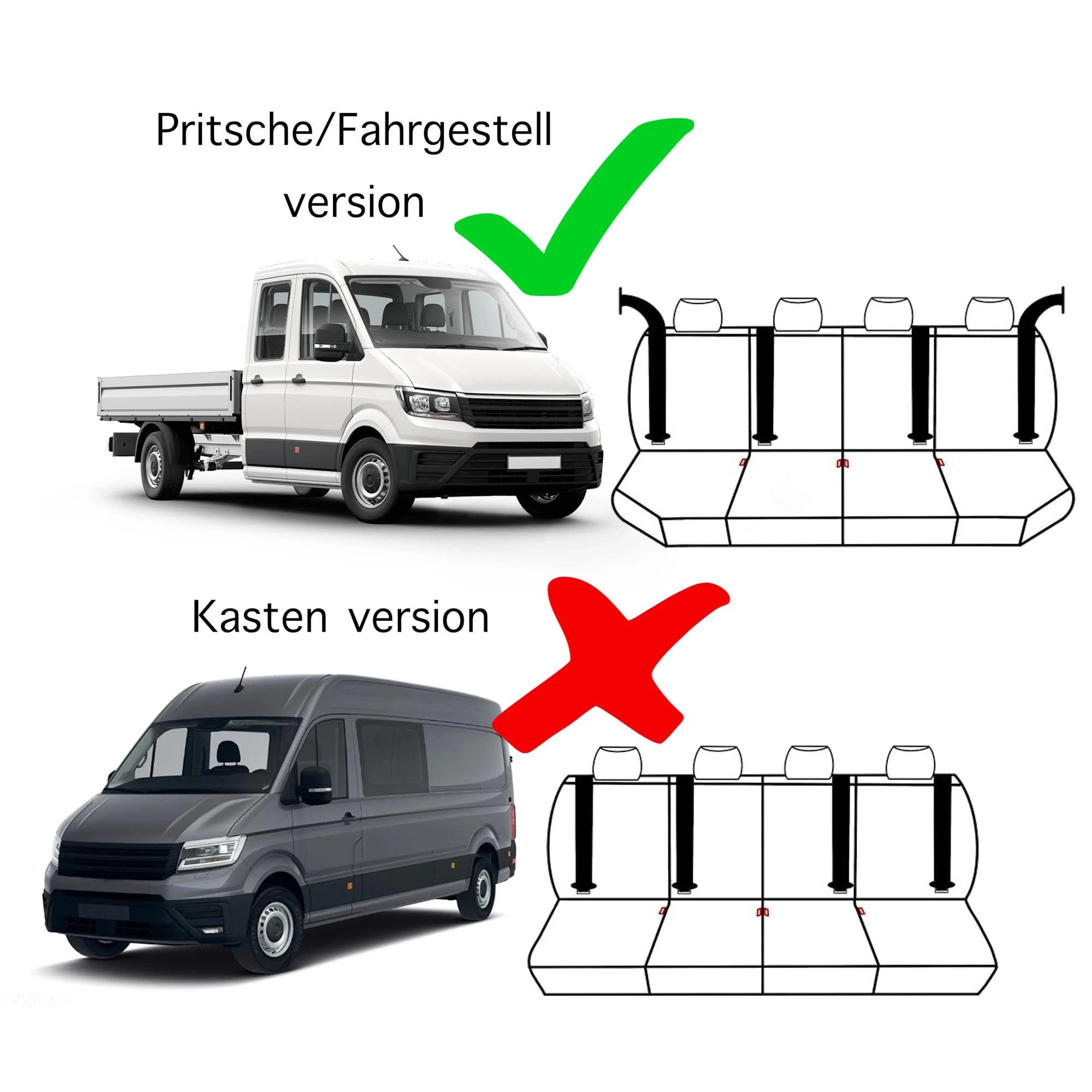 - Dedykowane dopasowanie: Przeznaczone wyłącznie do modelu Volkswagen Crafter od 2017 / od 2024 w wersji 4-miejscowej (Double Cab).