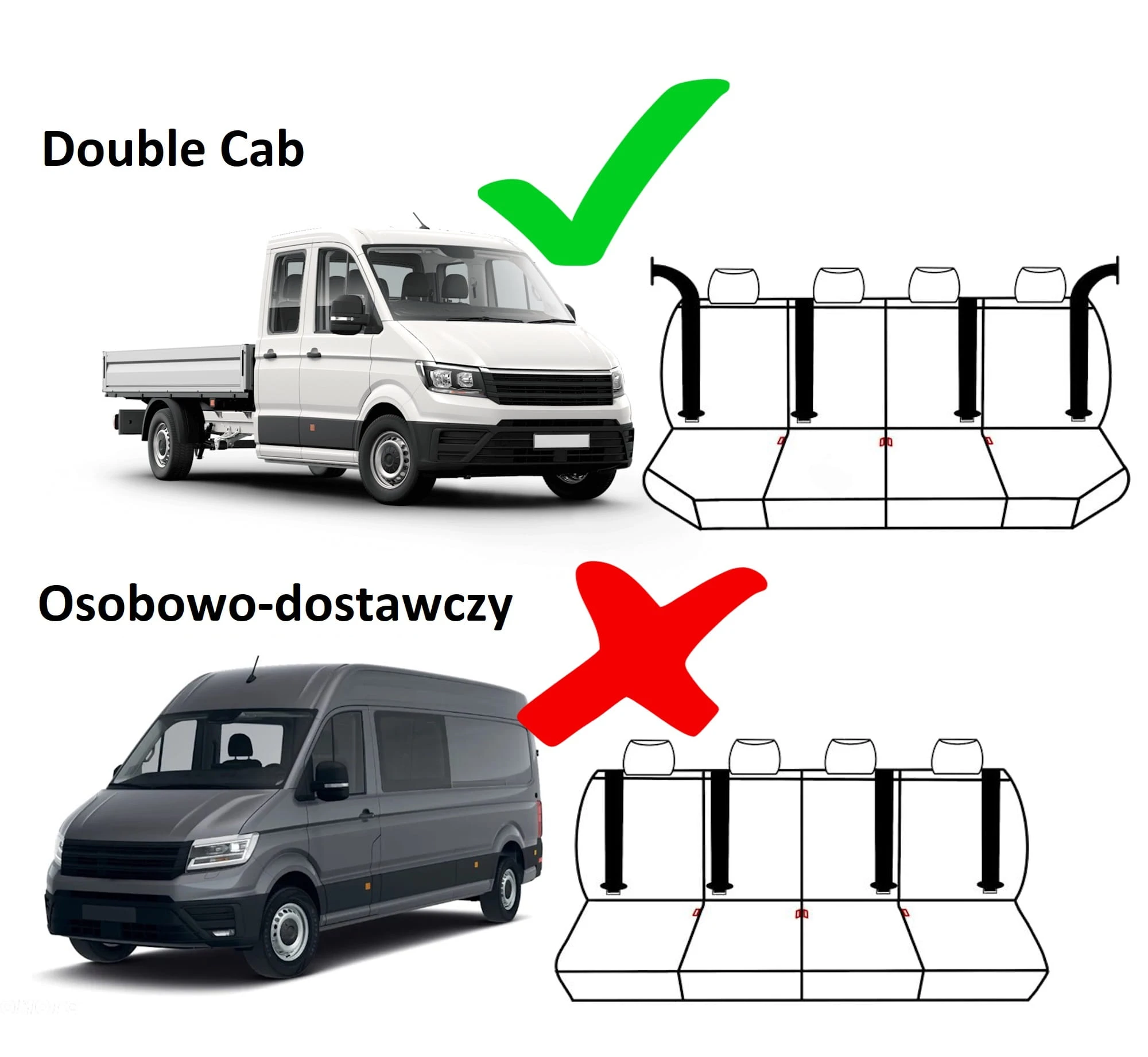 - Dedykowane dopasowanie: Zaprojektowane wyłącznie dla wersji Double Cab (podwójna kabina) modelu Crafter II od 2017 / od 2024 r.