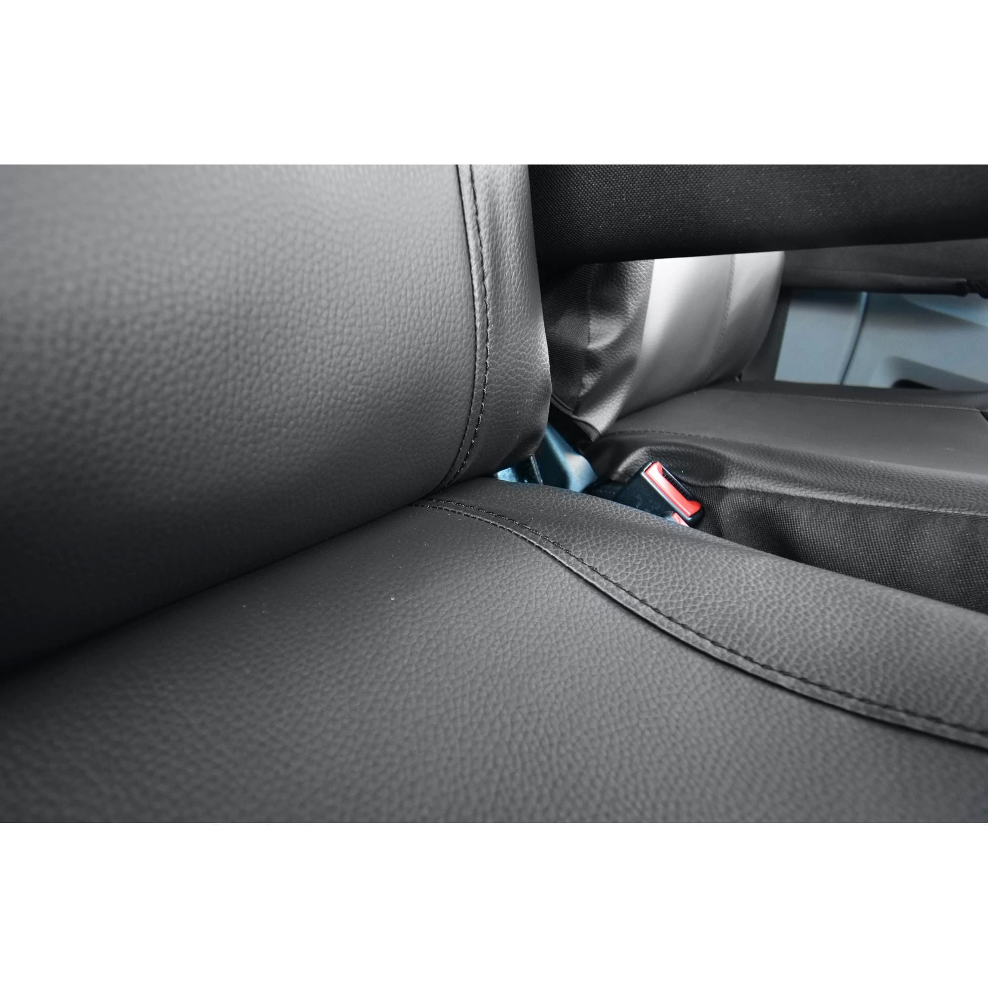 Linia VIP to rozwiązanie stworzone dla właścicieli aut dostawczych, którzy stawiają na maksymalną praktyczność i elegancki, profesjonalny wygląd wnętrza. Pokrowce w całości wykonane są z wysokiej jakości czarnej ekoskóry. Materiał ten nie tylko świetnie imituje naturalną skórę, ale przede wszystkim jest niezwykle odporny na trudne warunki eksploatacji, z jakimi mierzą się pojazdy typu van.