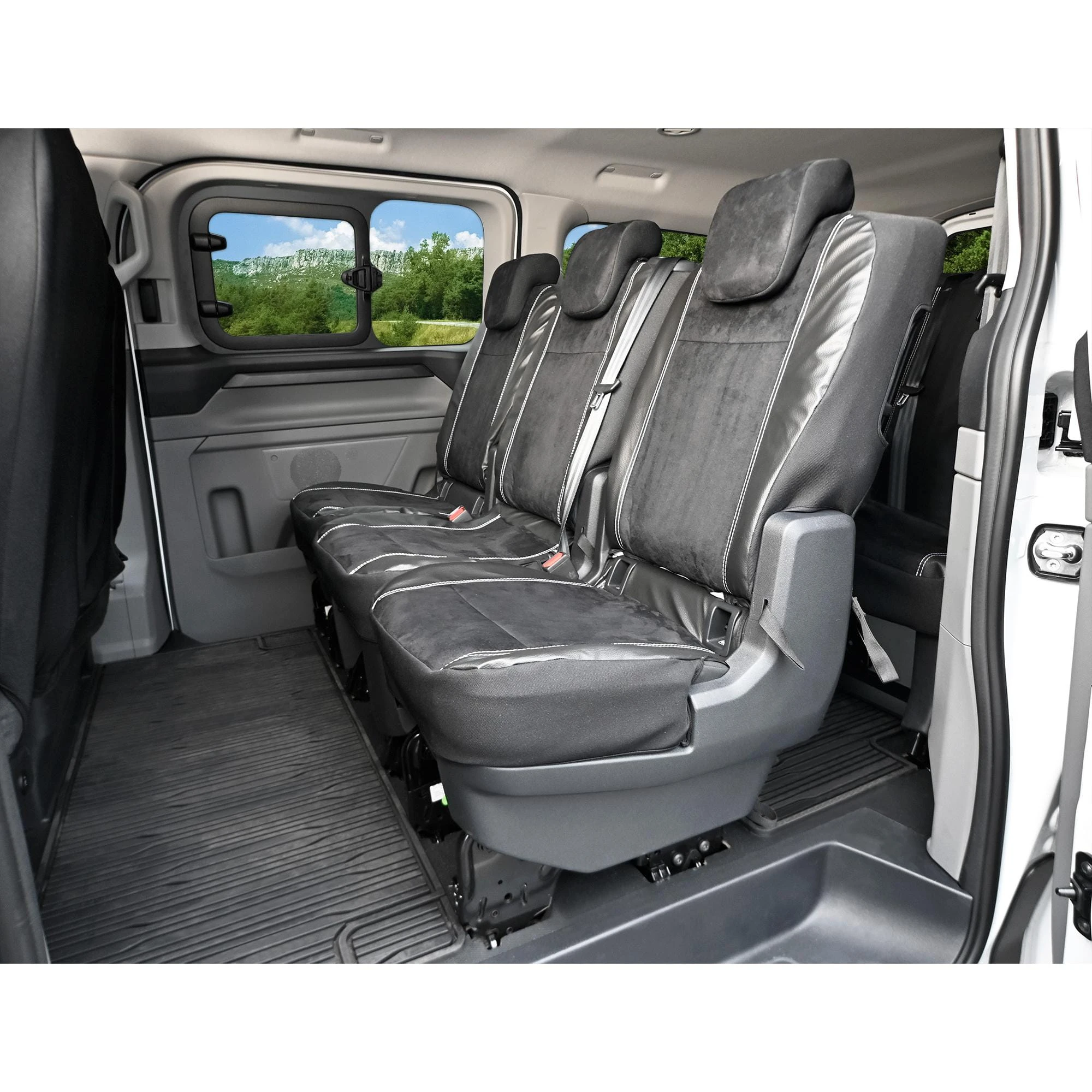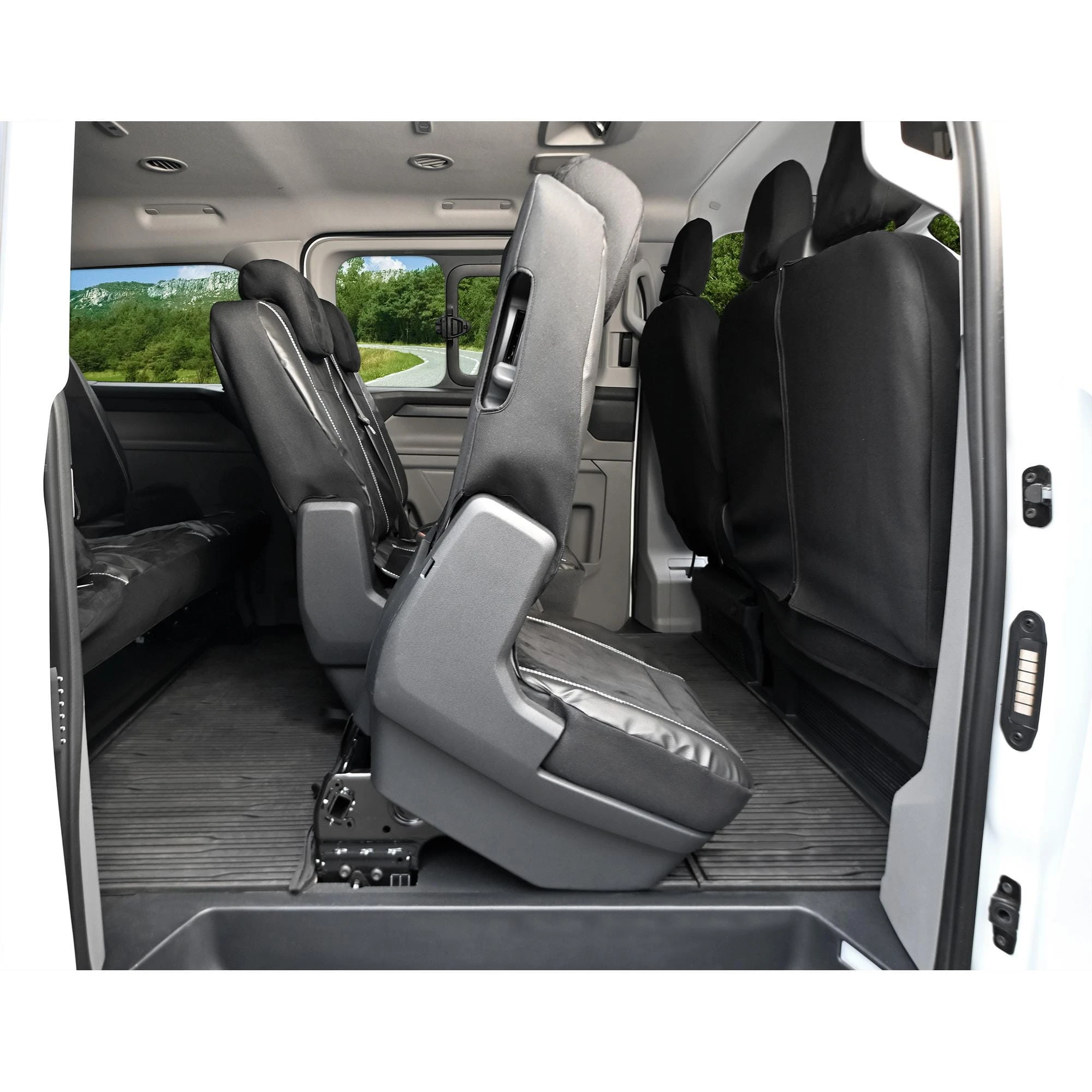 Uwaga: Produkt dedykowany do VW T7 Transporter. Nie pasuje do Forda Tourneo Custom z pasami w każdym oparciu. Rzeczywisty kolor może się nieznacznie różnić w zależności od parametrów Twojego ekranu.