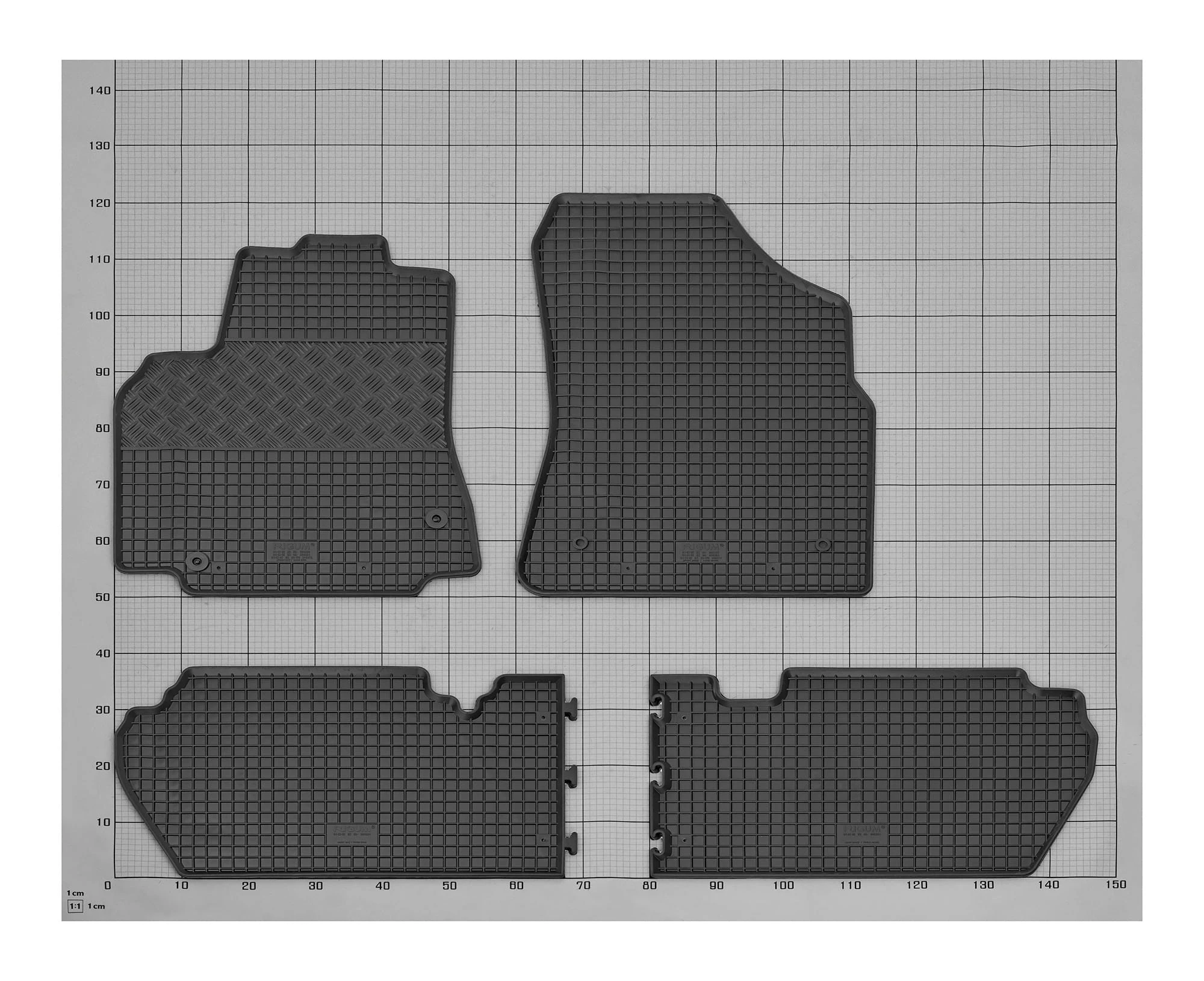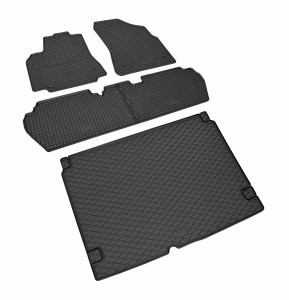 Zestaw zawiera: 4 pojedyncze dywaniki gumowe + 1 mata bagażnikowa