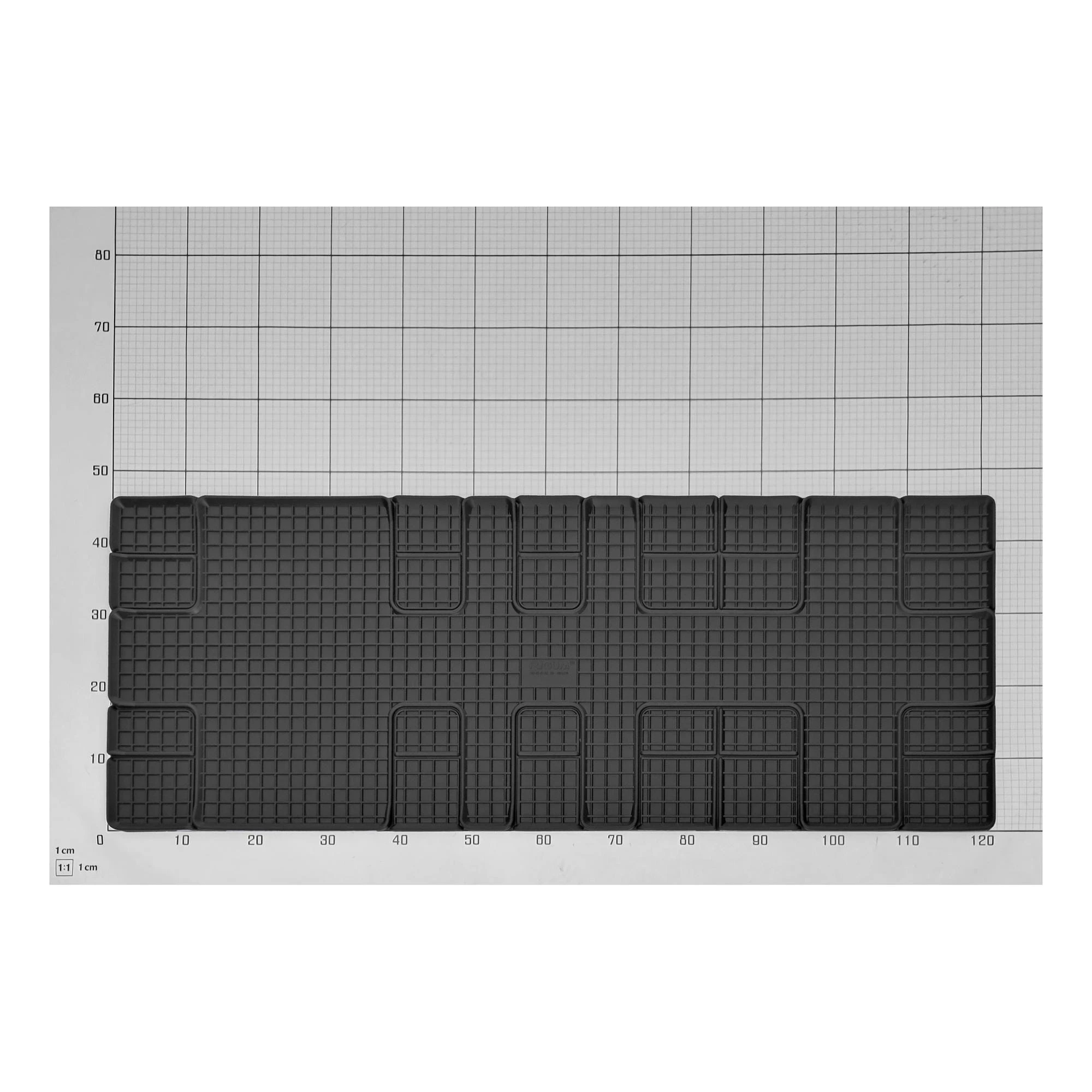 Zestaw zawiera: 6 pojedynczych dywaników gumowych + 1 mata bagażnikowa