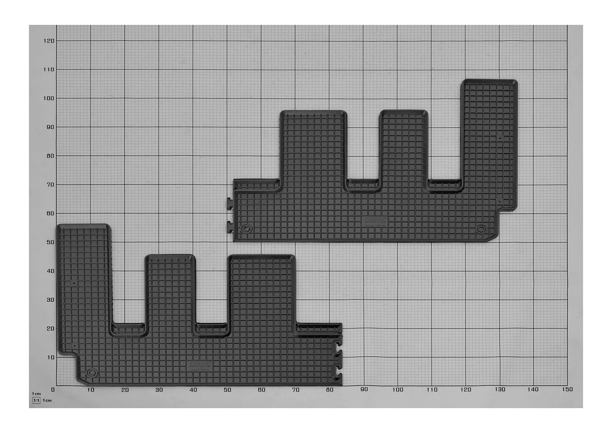 Zestaw zawiera: 7 pojedynczych dywaników gumowych + 1 mata bagażnikowa