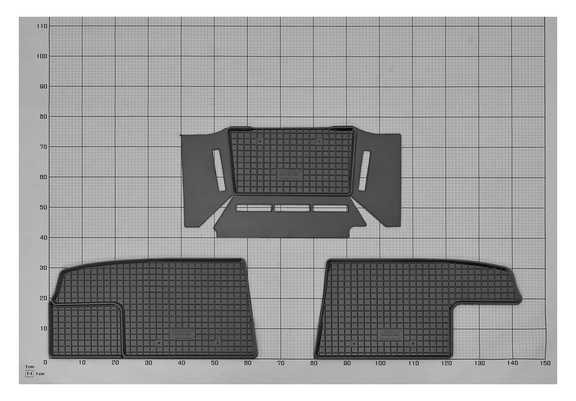 Zestaw zawiera: 8 pojedynczych dywaników gumowych + 1 mata bagażnikowa