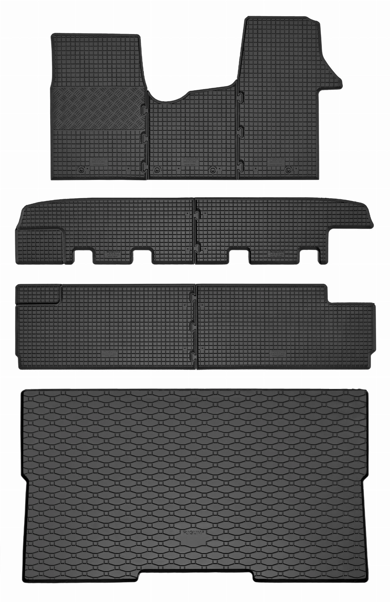 Zestaw zawiera: 8 pojedynczych dywaników gumowych + 1 mata bagażnikowa