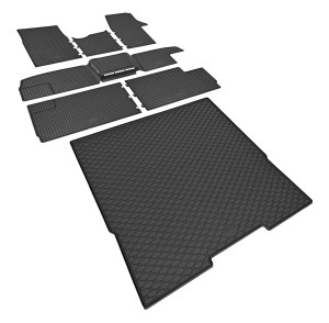 Zestaw zawiera: 8 pojedynczych dywaników gumowych + 1 mata bagażnikowa