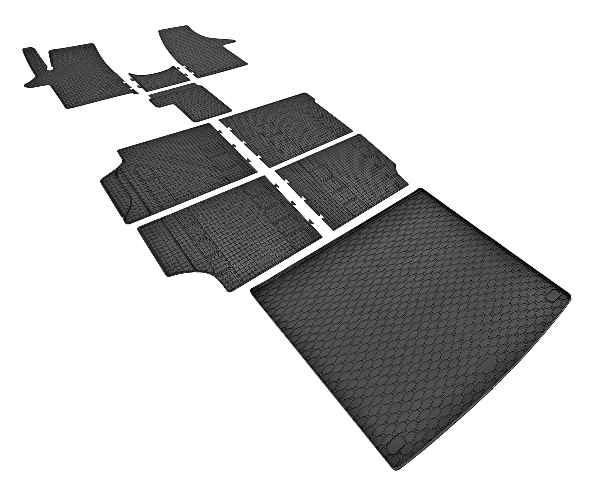 Zestaw zawiera: 8 pojedynczych dywaników gumowych + 1 mata bagażnikowa