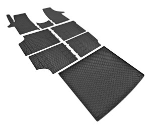 Zestaw zawiera: 7 pojedynczych dywaników gumowych + 1 mata bagażnikowa