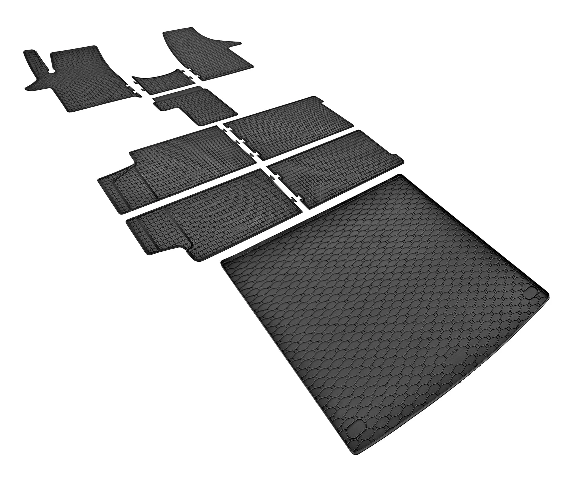 Zestaw zawiera: 8 pojedynczych dywaników gumowych + 1 mata bagażnikowa